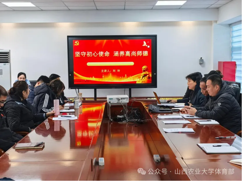 为进一步加强部门师德师风建设,提升教师职业道德素养,10月22日上午,体育部党委书记刘玲在体育中心三楼会议室讲授了题为“坚守初心使命,涵养高尚师德”的专题党课,全体教职工参加学习。