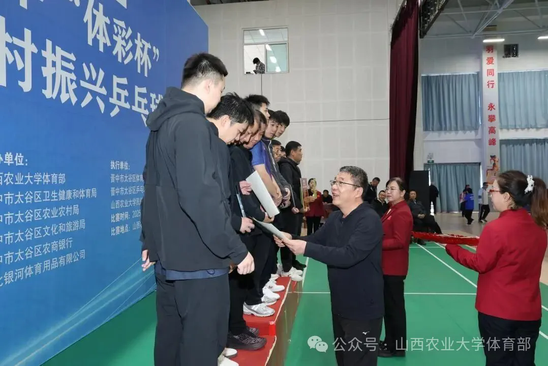 10月26日,经过三天的激烈角逐,由中国乒乓球协会主办,山西省乒乓球协会和我校共同承办的2025年“体彩杯”全国首届乡村振兴乒乓球锦标赛在我校太谷校区圆满落幕。校党委副书记李卫祥,党委常委、副校(院)长李捷出席闭幕式并为获奖队伍颁奖。