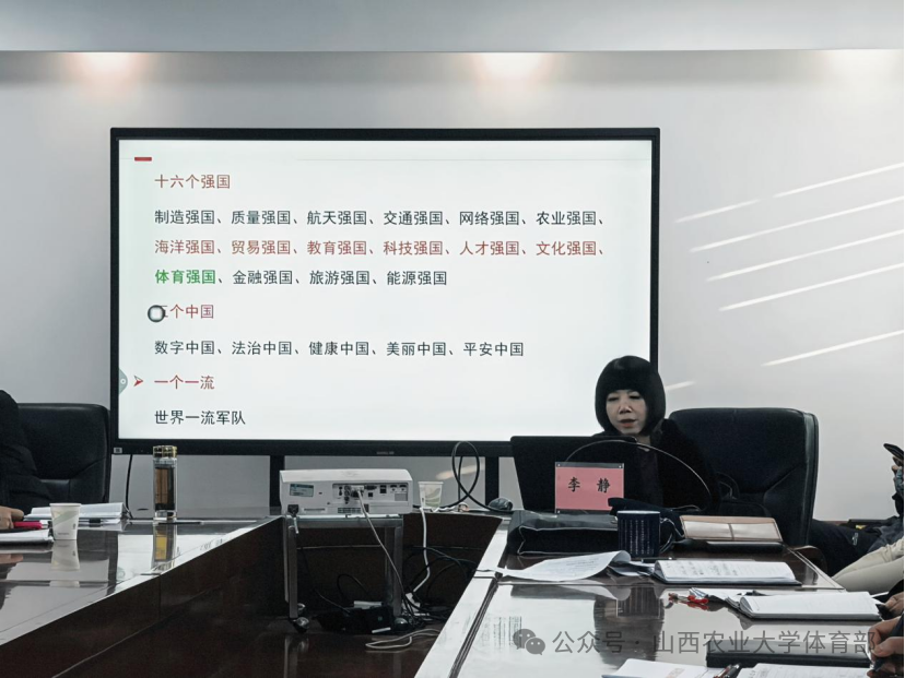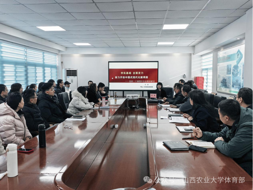 为深入学习贯彻党的二十届四中全会精神,切实把部门教职工的思想和行动统一到全会决策部署上来,12月24日上午,体育部党委特邀晋中市太谷区区委党校李静老师作专题讲座。全体教职工参加学习,党委书记刘玲主持会议。