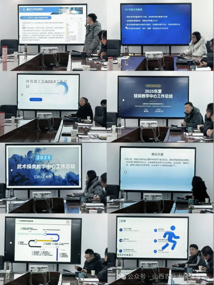 会上,党政办公室、教学管理办公室、工会、球类教学中心、武术操类教学中心、田径游泳教学中心、国家体质健康标准测试中心、场馆中心负责人分别从工作完成情况、取得成效、工作中的不足与难点、下一步工作思路等方面,通过详实数据、典型案例和可视化图表,系统汇报了2025年度目标完成情况,明确了2026年改进路径与发展规划。